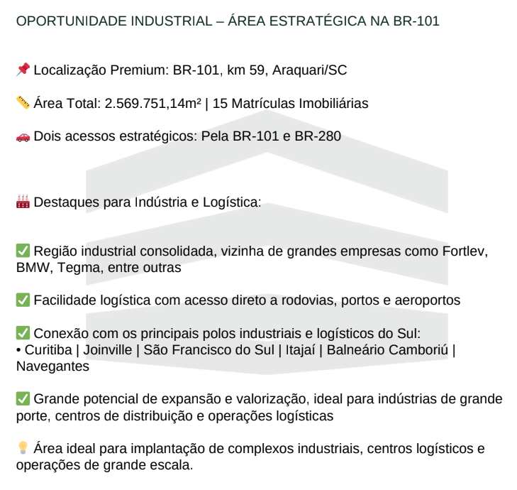 ✅ Grande potencial de expansão e valorização, ideal para indústrias de grande